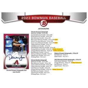 • Another year, another fresh crop of prospects and the emergence of an all-new set of exciting Bowman designs with the 2023 Bowman Baseball Hobby Box!
