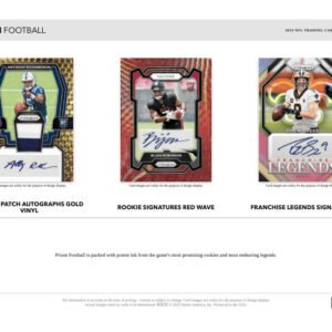 Dive into the 2023 Panini Prizm Football Hobby Case at Giant! AveragingΒ 24 autographs, 120 #’d Prizms, plus tons of rookies and other prizms, this is THE release of the year for football!