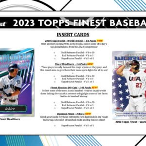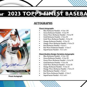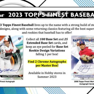 • Always a fan favorite, the 2023 Topps Finest Baseball HobbyΒ Case lives up to the name with a strong build of stellar new designs, along with some returning classics featuring all the best superstars and rookies that baseball has to offer!