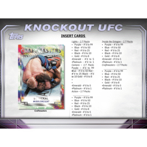The 2024 Topps UFC Knockout Hobby Box delivers a powerful punch for MMA collectors, offering premium cards featuring the biggest names in the UFC. Each box includes a mix of autographs, memorabilia cards, and parallels, showcasing UFC champions, rising stars, and fan-favorite fighters. With bold designs and on-card autographs, collectors can chase rare hits like dual autographs, relic cards, and limited-edition parallels. The Knockout series is known for capturing the intensity and excitement of UFC action, making it a must-have for fans looking to add top-tier UFC content to their collection.