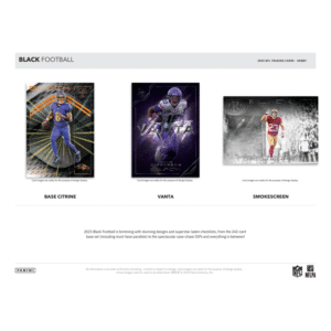 – 2025 Black Football is brimming with stunning designs and superstar-laden checklists, from the 242-card base set (including must-have parallels) to the spectacular case-chase SSPs and everything in between!